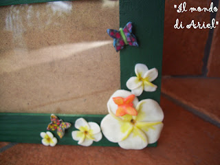 In occasione di un'esposizione fatta a fine agosto con tema "La Pomelia" ho realizzato anche delle cornici....sempre in pasta di mais e dipinte a mano. :)